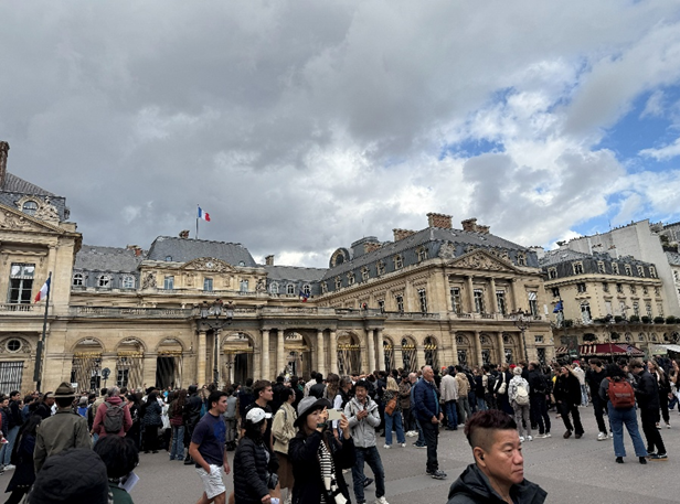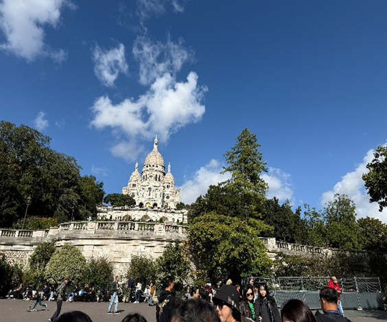 유로스타를 타고 런던에서 파리로 이동! 기차 창밖으로 보이는 건물들의 양식부터 ‘여긴 정말 유럽이구나’ 하는 감탄이 절로 나왔다. 파리에 오기 전부터 “낭만의 도시”라는 이미지를 가지고 있었기에, 도시 곳곳에서 그 낭만을 찾으려 했다. 처음 본 에펠탑은 생각보다 단순한 철 구조물 같았지만, 막상 눈앞에서 마주하니 설명할 수 없는 설렘이 밀려왔다. 밤이 되어 조명이 켜지고 세느강 위로 반짝이는 불빛이 비출 때, 비로소 “아, 이게 파리의 낭만이구나” 싶었다. 모두 직접 보고 싶던 것들이라 감동이 밀려왔지만, 남자 체면상 크게 표현하지는 못했다. (속으론 감격) 몽마르트 언덕을 걸어 올라가 사크레쾨르 대성당에 도착하니 파리 시내가 한눈에 내려다보였다.