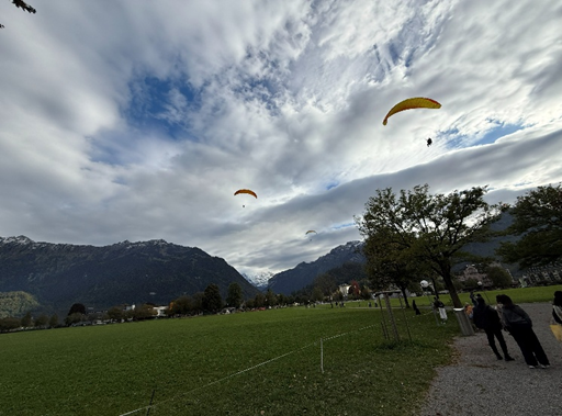 인터라켄에 도착하니 TV 프로그램 ‘텐트 밖은 유럽’에서 유해진, 윤균상, 진선규 배우들이 행글라이더를 탔던 그 장소였습니다. 저녁 식사와 함께한 맥주 한잔 이것 역시 인솔자 제니가 또 떼제배에서 테트리스 도와줘서 고맙다고 쏘았다. 현지식과 셀러드가 여행의 피로를 풀어줬죠. 호텔 근처 마트에서 신라면 큰 사발과 배 모양 과일을 사서 일행들과 나눠 먹은 소소한 추억도 생겼습니다. 숙소가 인터라켄 관광지내의 호텔이어서 스위스 전통호텔 같은데 분위기가 좋았다.
