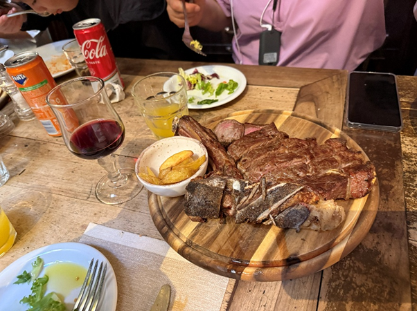 피렌체 미슐랭 맛집에서 먹는 티본 스테이크 정말 맛잇었고, 티본 뼈에 붙은 고기는 내 튼튼한 앞니로 잘 해결을 햇다. 사람들이 거기가 맛있는데 체면을 차리느라 안먹어 나 혼자서 티본 뼈 3대를 먹었더.